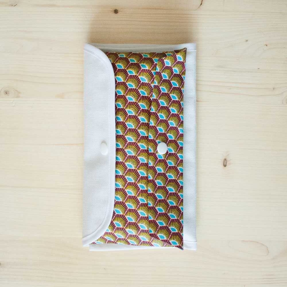 La pochette à motif est réalisée à partir de tissu imperméable, ainsi, vos masques utilisés seront rangés en toute sécurité.