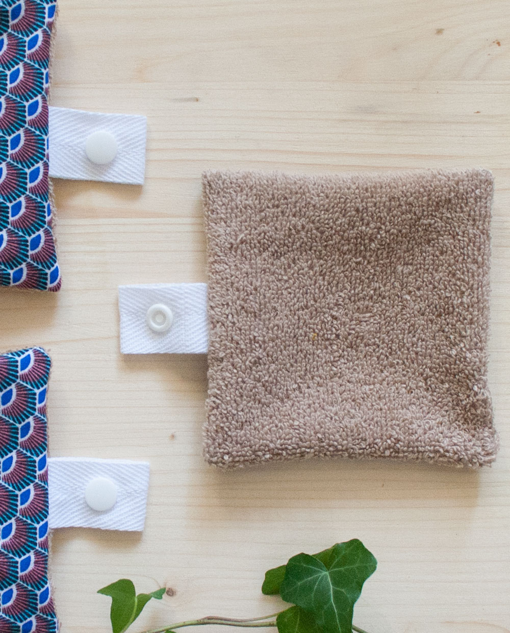 Ensuite, le bouton pression permet d’accrocher facilement vos jolies lingettes démaquillantes lors du lavage et du séchage. C’est pourquoi les lingettes se clipsent sur la cravate Atelierbeige (non incluse dans ce Kit).